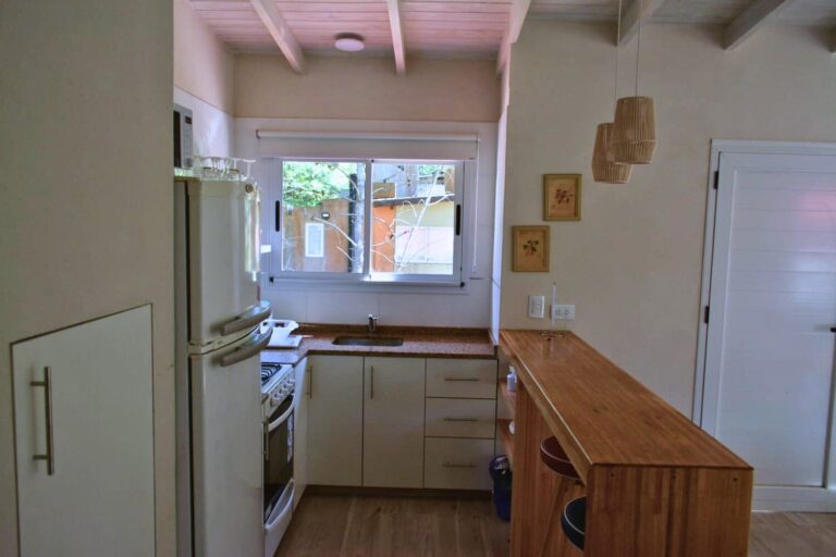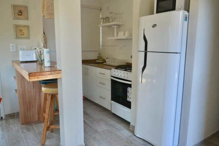 - Cocinas equipadas con tramontina, tostadora eléctrica, pava eléctrica, cafetera eléctrica, microondas, secador de pelo y Vajilla completa.