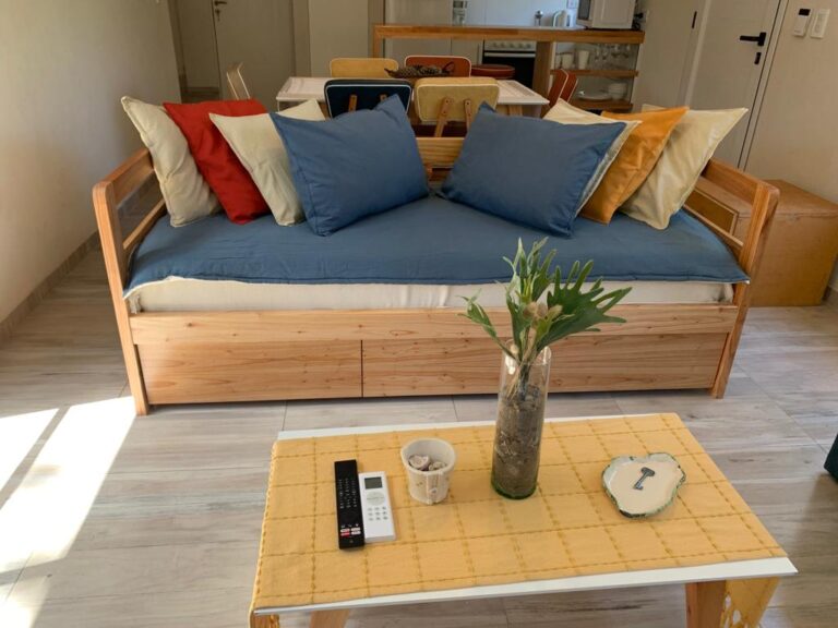 Dos habitaciones: 1 cama matrimonial, 2 camas twin y un diván cama con carrito en living