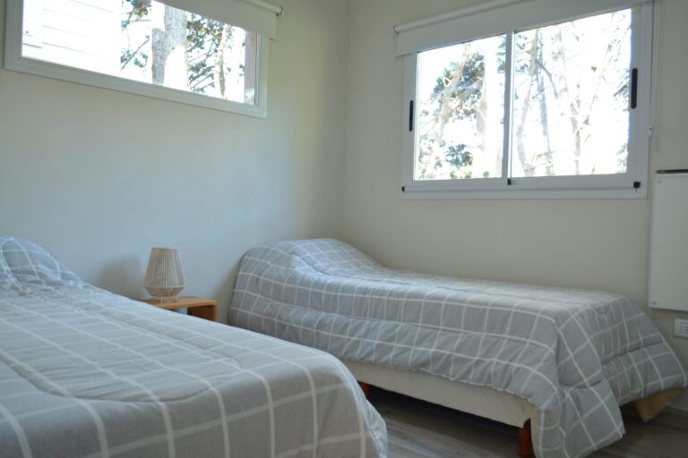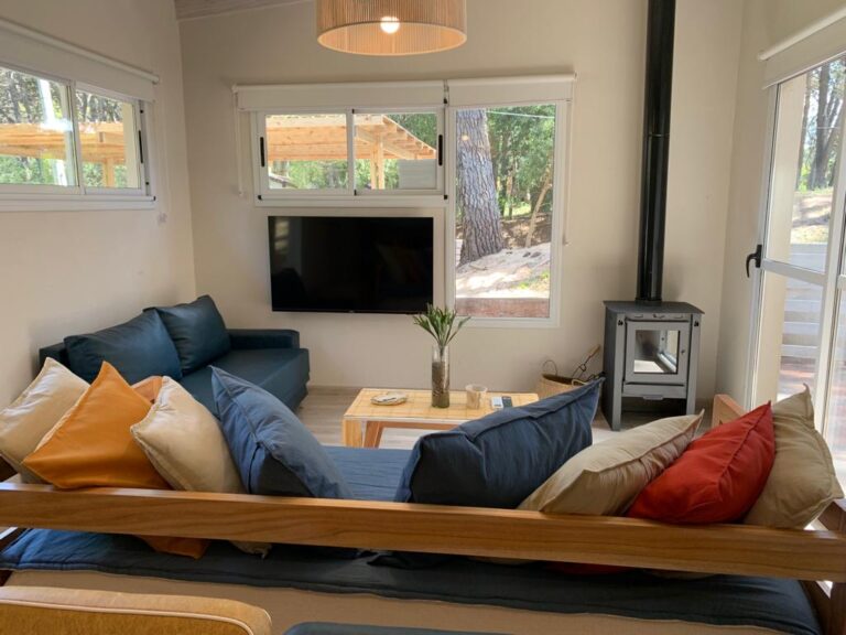 Todas las casas cuentan con Wifi, caja de seguridad, alarma monitoreada, cortinas black out, dormitorios con placas Ecosol, estufa Tromen en el living, ducha exterior, servicio de ropa blanca, toallones, reposeras y heladerita.